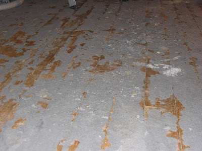 Til slutt; dette er min jobb...... Skraper av alt dette pappgreiene. Jeg er ikke vant til sånt arbeid så jeg stønner og klager over såre knær og mye støv :(